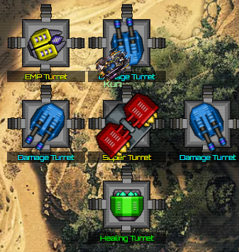 - Damage Turret: Deals continuous standard Damage to nearby Targets.