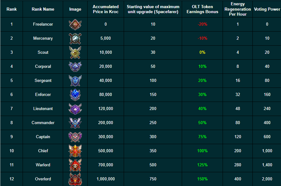 - Currency: Ranks are purchased using Kroc.