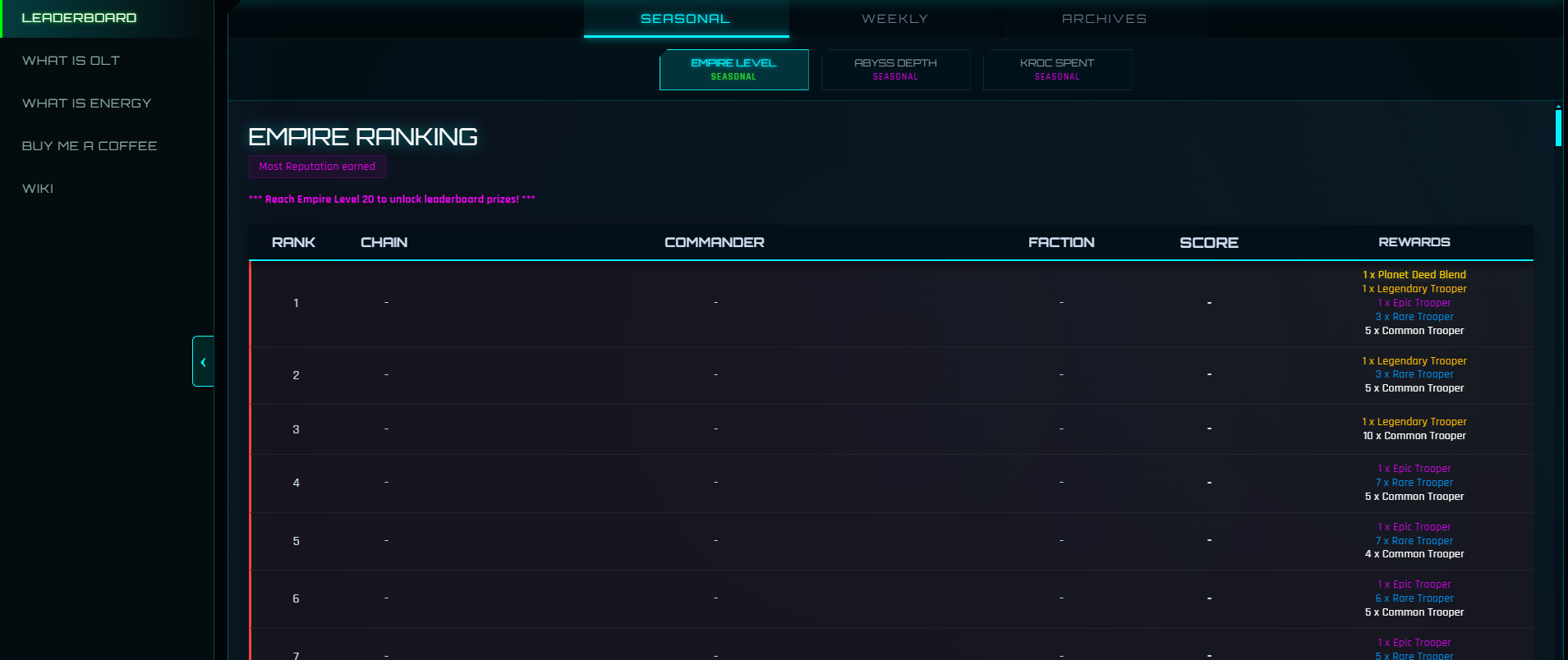- Prizes: Top-ranking Clans earn OLT Tokens.
