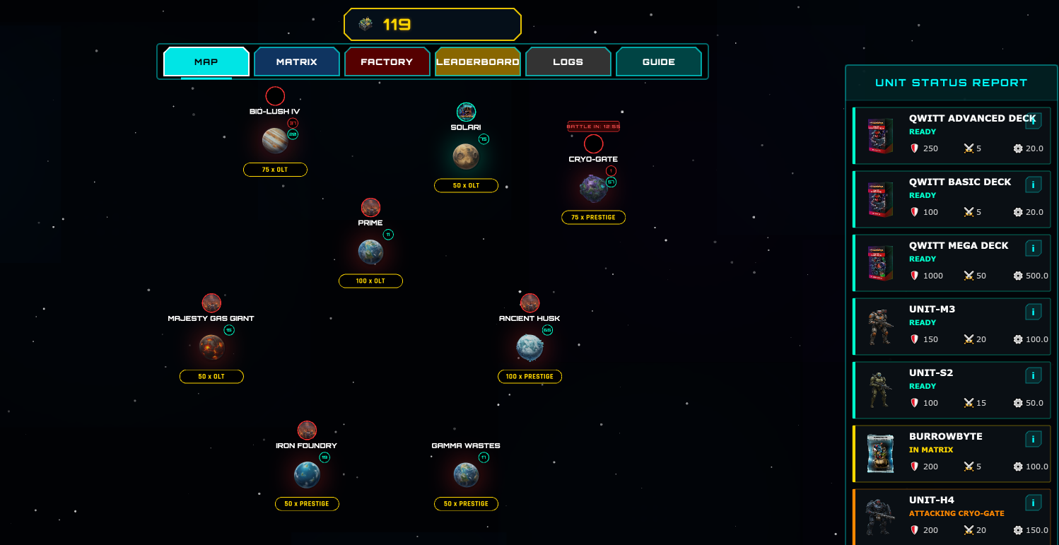 - Combat: Deploy units to attack enemy-held nodes or defend nodes your Clan currently occupies.